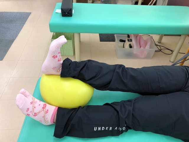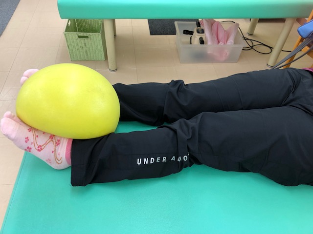 ももの体操 クノンボール体操 2018年08月15日 ひざの痛い方や足の痛みなどで、筋力が低下している方の体操です。 簡単にできる体操ですので、寝ながらできますよ。 ①アキレス腱の下にクノンボールを置きます。 ②そのまま上からボールをつぶします。 ③ももの上の筋肉が硬くなるのが分かると思います。 ④10秒間×5回 左右行います。 ももの内側を鍛える体操です。ひざの痛い方にお勧めです。 ①足首にクノンボールをはさみます。 ②ボールをつぶします。 ③ももの内側を意識します。 ④10秒間×5回 無理せずに行ってくださいね。