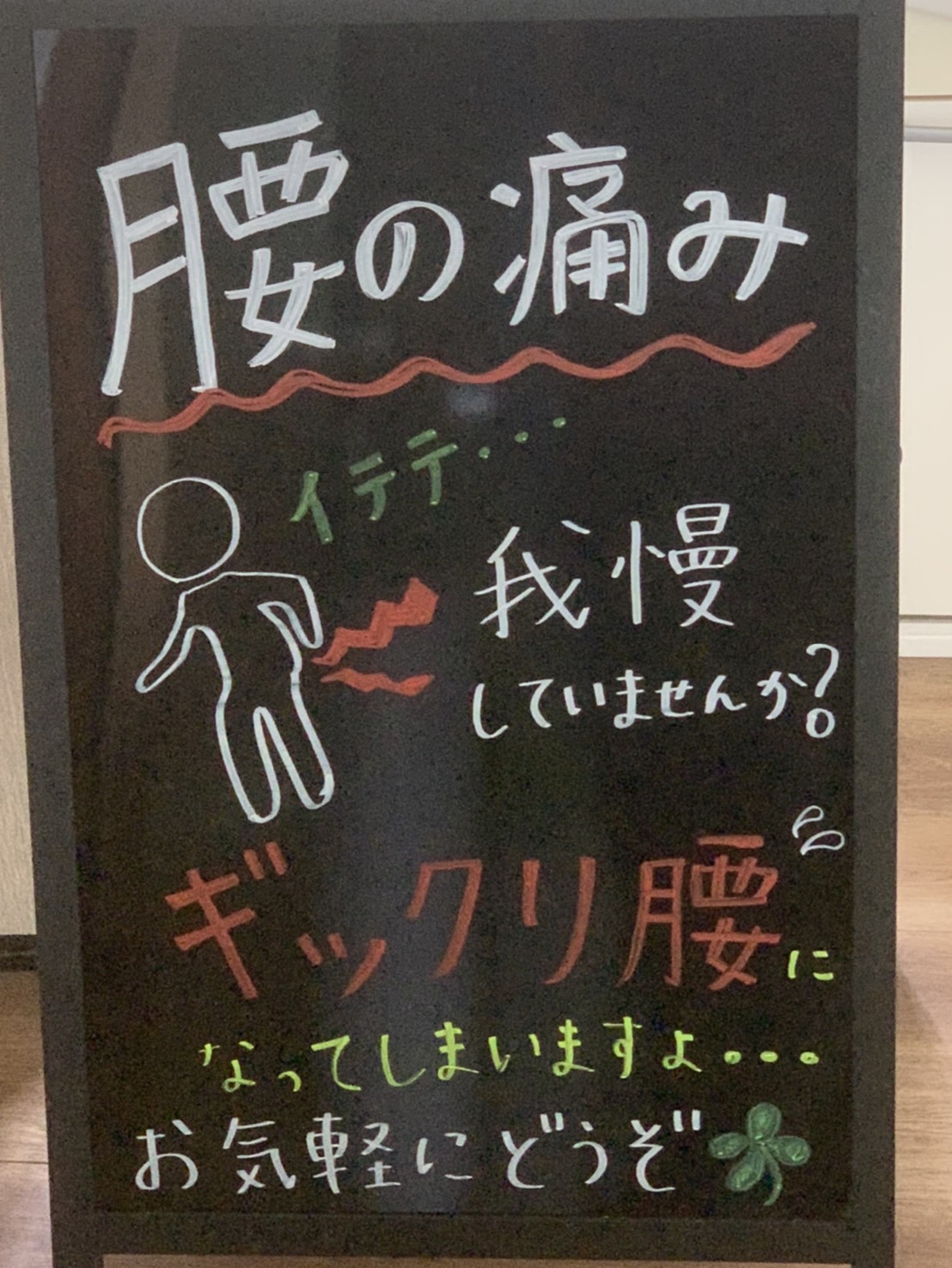ギックリ腰でお悩みの方へ お知らせ 2024年08月31日 おはようございます。 今月は、天気が暑かったり、台風が近づいてきて、大雨など天候不順な8月でした。 その為体が疲れてしまい、腰の負担が大きくなり、腰を痛める方が多くお見えでした。 そんな当院オリジナルのセルフストレッチをお伝えしています。 お風呂上りに簡単で、誰でもできる体操ですよ。 ギックリ腰でお悩みの方、一度ご相談下さいね。 PR