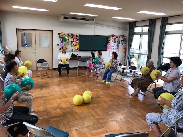 健康講座 活動報告 2018年07月19日 平成30年7月19日(木)午後1時30分より 三好下公民館にて、100歳まで歩ける健康法をテーマに話をしました。 とても暑い中、お集まりくださり、本当にありがとうございました。 後半は、クノンボール体操を体験して頂きました。 いかがでしたか? 簡単で、楽しくできる健康体操です。