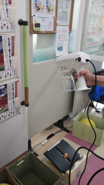感染防止の為に消毒・抗菌コーティング中の様子です。